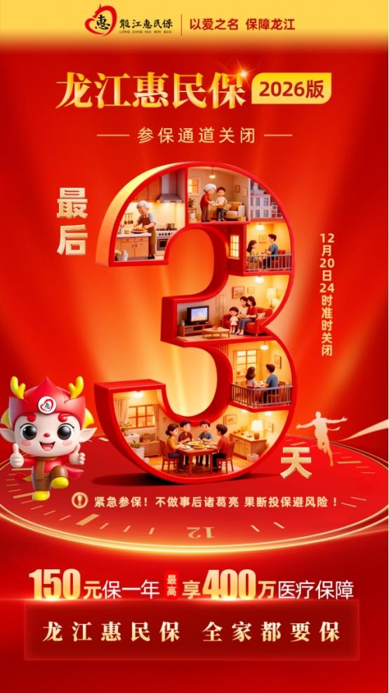 “龍江惠民保2026版”參保通道將于2025年12月20日24時(shí)正式關(guān)閉,當(dāng)前參保已進(jìn)入最后3天倒計(jì)時(shí)。為方便廣大民眾全面了解這一惠民補(bǔ)充醫(yī)療保障政策、精準(zhǔn)把握參保窗口期,相關(guān)部門對(duì)產(chǎn)品核心保障內(nèi)容及年度優(yōu)化亮點(diǎn)進(jìn)行梳理說明。