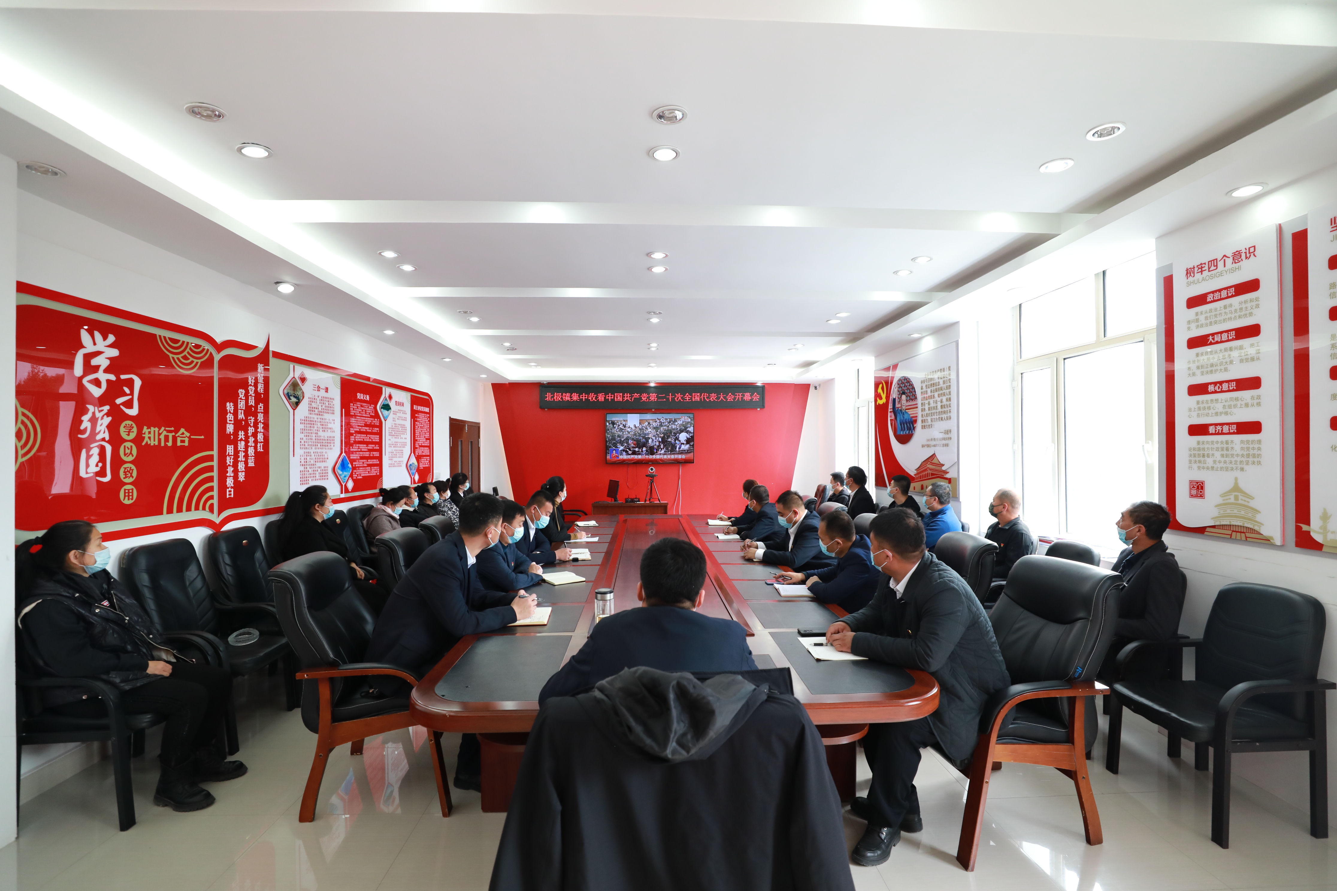 10月16日上午,在神州北極,各界干部群眾歡欣鼓舞,認(rèn)真收聽收看黨的二十大開幕盛況。